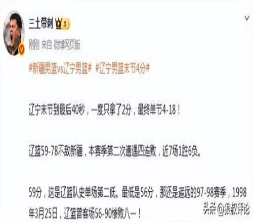 辽宁单节4分惨负新疆引热议!球迷狂刷官媒“输得脸都不要”