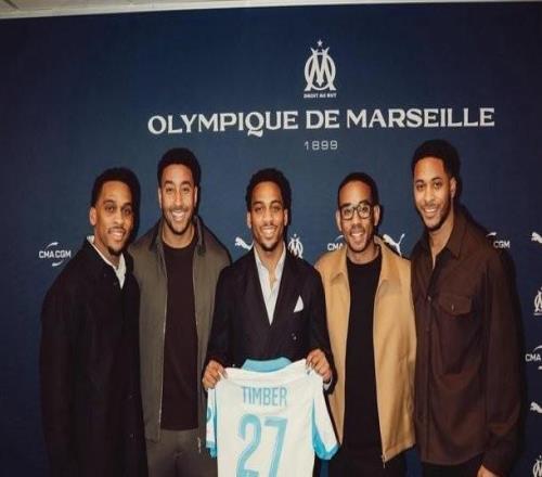 这能分清阿森纳后卫廷贝尔参加了他兄弟昆滕签约马赛的仪式